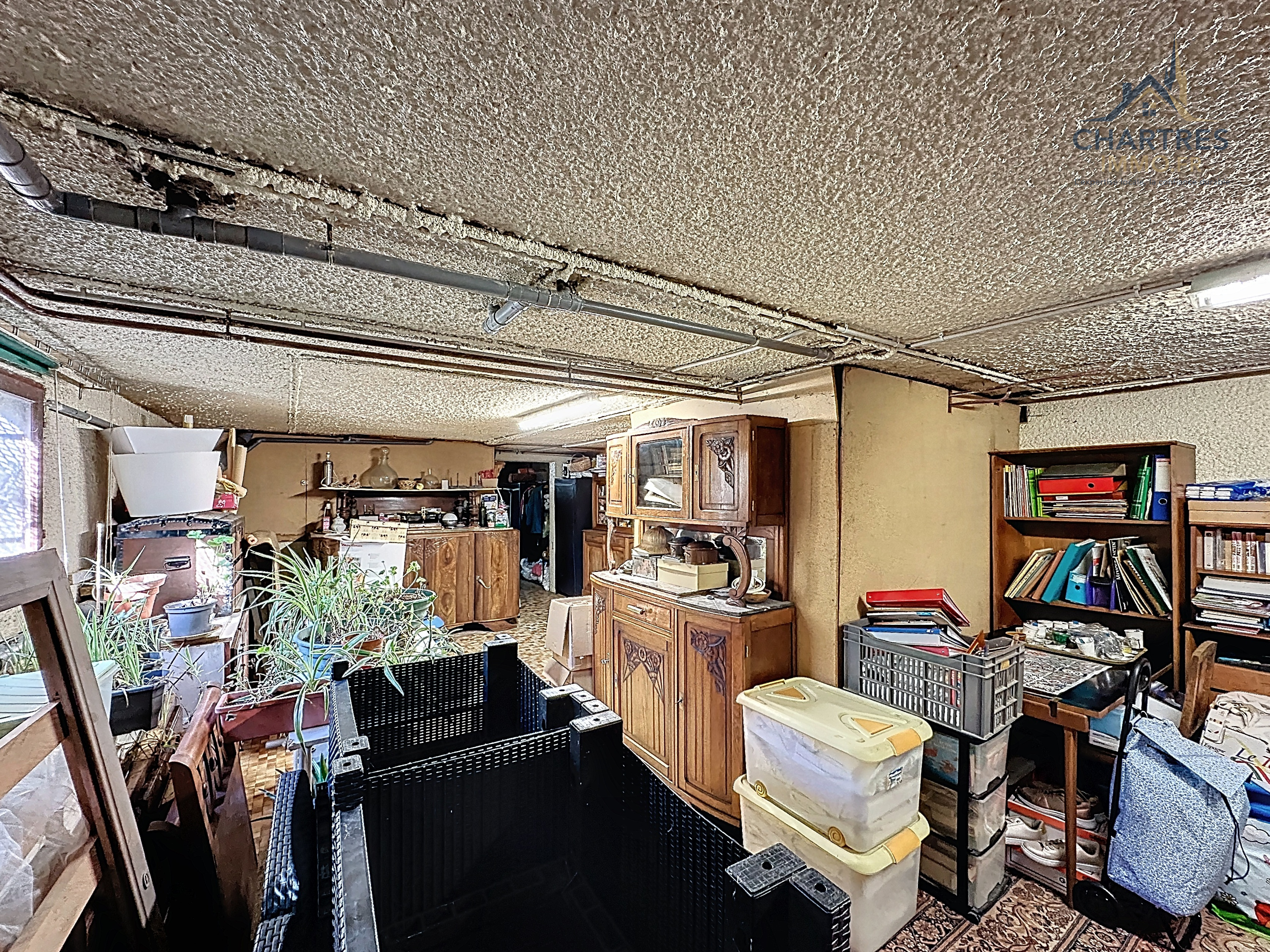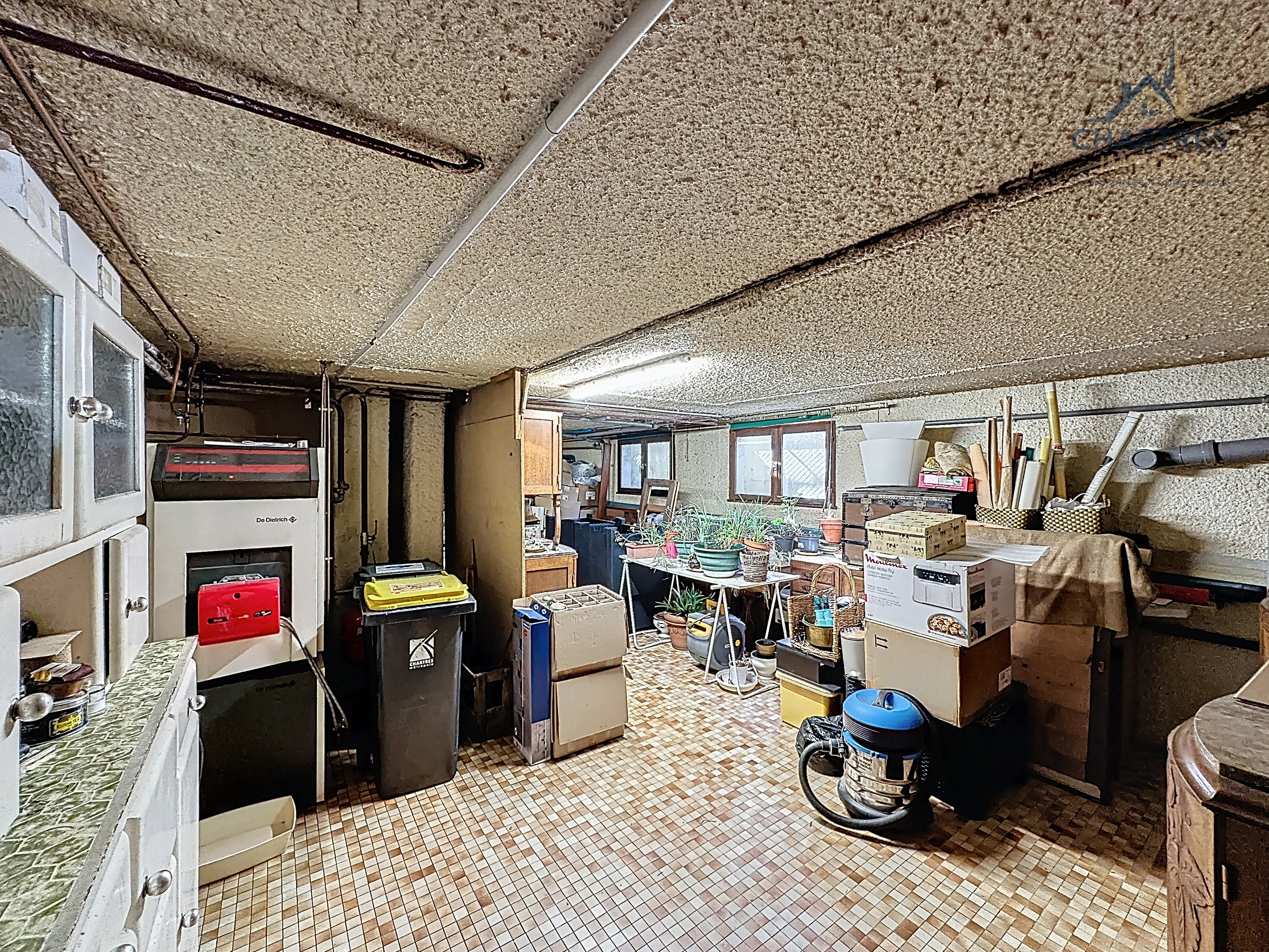 Le sous-sol complet constitue ici un avantage rare sur le secteur. Garage double, chaufferie, local technique, buanderie indépendante, cave sur gravillon et vide sanitaire exploitable composent un ensemble très polyvalent. Ce volume supplémentaire permet aussi bien le rangement que l’atelier, une salle de loisirs ou une évolution future selon les projets. Pour une maison familiale proche Chartres, ce niveau de fonctionnalité reste peu courant.